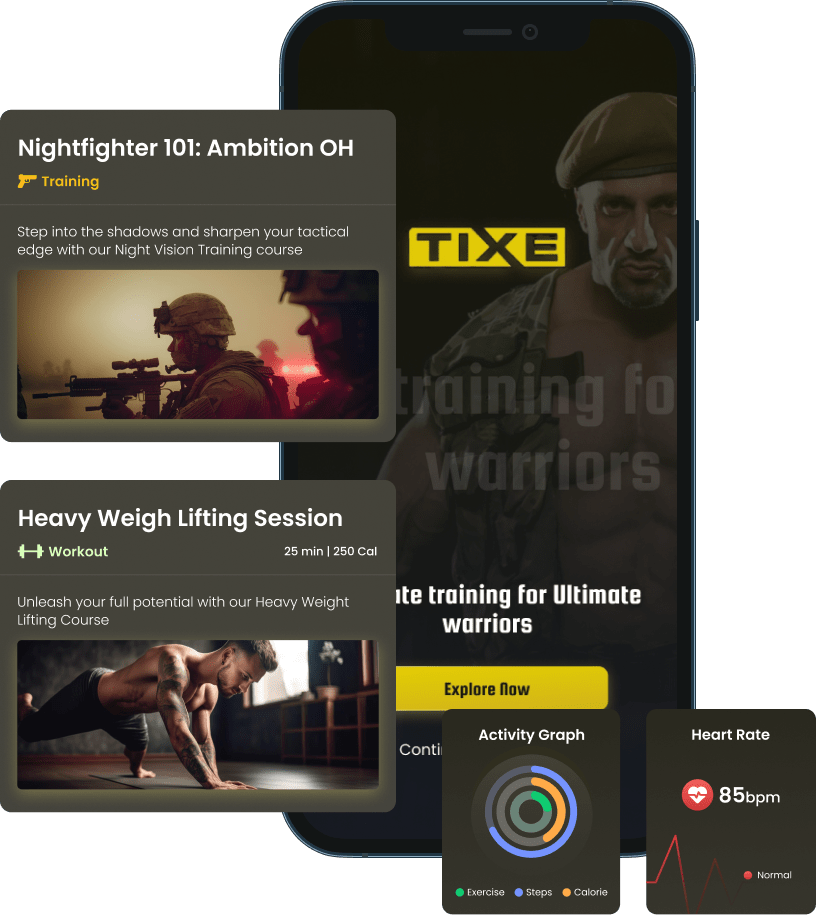 Tixe brings it all together — from military-inspired training to complete fitness tracking and a tactical marketplace